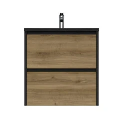 Tiger Reverse Meubelset Met 2 Lades 60 Cm Chalet Eik / Mat Zwart Inclusief Quadro Wastafel Mat Zwart