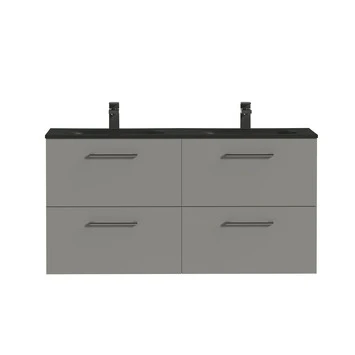 Dit badkamermeubel is onderdeel van de Tiger Studio serie. Dit is een serie met enorm veel varianten met een kleine aanpassing. Denk daarbij aan afmetingen, kleur, vorm, etc. Deze variant heeft twee mat-grijze onderkasten van 60cm met in totaal 4 lades, met ronde grepen en een softclose ladesysteem. Dat wil zeggen dat de lades altijd zachtjes sluiten. Dit voorkomt schade aan het houtwerk wanneer je per ongeluk de lades te hard dicht doet. De lades bieden voldoende ruimte om handdoeken en andere sanitaire spullen in op te bergen. De totale onderkast, met een breedte van 120 cm, heeft 2 mat zwarte wastafels van polybeton. Hoewel deze op de afbeelding misschien met kraan te zien zijn, wordt dit badmeubel exclusief kraan en sifon verkocht. Gelukkig heeft GAMMA ook een breed assortiment met kranen. Dankzij de duidelijke handleiding en meegeleverd bevestigingsmateriaal kun je eenvoudig zelf de montage uitvoeren. Tot slot zit er 3 jaar garantie op alle badmeubelen binnen de Tiger Studio serie. Mocht dit Tiger Badkamermeubel Studio 120 cm Mat Grijs met Dubbele Polybeton Wastafel Mat Zwart en Ronde Grepen het net niet helemaal zijn, kijk dan vooral nog even verder in de GAMMA webshop. Er is vast en zeker een passende maat en kleurencombinatie te vinden!