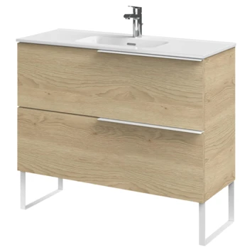 Strakke lijnen gecombineerd met natuurlijke materialen en een slim design voor een ruimtelijk gevoel. Dit vat de serie Tiger Pocket perfect samen. Het strakke ontwerp is simpel maar elegant en brengt meer comfort naar je badkamer. Deze kast heeft een diepte van slechts 39 cm. Ideaal voor de kleinere badkamer. De ruime lades zijn uitgerust met Hettich softclosegeleiders en de binnenzijde heeft een trendy afwerking in textiel. De matwitte grepen zijn perfect in het geheel verwerkt, net als de twee speelse sierpoten. De afwerking in naturel eik zorgt voor een stijlvolle Scandinavische look.