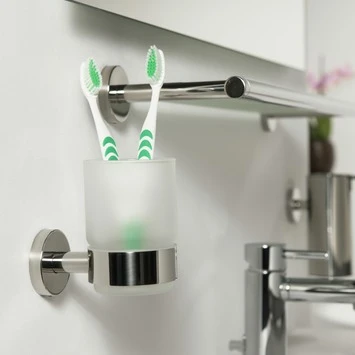 De Tiger Bekerhouder Boston met Beker Chroom van de accessoire serie Boston is uitgevoerd in glanzend RVS gecombineerd met mat glas, en is ook verkrijgbaar in geborsteld RVS. Dit product kan aan de wand worden geschroefd, maar kan ook met behulp van Tigerfix 1 op een gladde en harde ondergrond geplakt worden. Je hoeft dus niet te boren. (Tigerfix is los verkrijgbaar). Er zijn van deze serie diverse sanitair accessoires verkrijgbaar. Dit product maakt deel uit van het Boston totaalconcept, dat verder bestaat uit kranen, badmeubelen, douche accessoires en douchecabines, alles in de Boston stijl.
