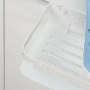 Tiger Caddy douchemand heeft een vlakke bodem met hoge rand die ervoor zorgt dat de producten stevig in het rek blijven staan en de afwateringssleuven laten het water met gemak weglopen. De zachte afgewerkte hoeken zorgen ervoor dat je zonder gevaar voor eigen vingers het mandje schoon kan maken. De Tiger Caddy witte douchemand is 24cm.
