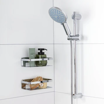 De Tiger Doucheset Splash Termini met Glijstang 6 Douchestanden is uitgevoerd in chroom, en bestaat uit een handdouche met een diameter van 15 cm, voorzien van 6 standen en een antikalk functie, een douchestang en een doucheslang van 1,5 meter. Deze doucheset past op de plek van je oude doucheset, indien ruimte tussen de twee steunen van de oude doucheset 52 cm tot 62 cm bedraagt. Dit product is onderdeel van het Tiger Splash assortiment, dat bestaat uit handdouches, doucheset, doucheslangen en toebehoren.