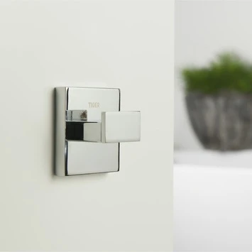 De Tiger Haak Items Groot Chroom van de accessoire serie Items is uitgevoerd in chroom, en is ook verkrijgbaar in RVS. Dit product kan aan de wand worden geschroefd, maar kan ook met behulp van Tigerfix 1 op een gladde en harde ondergrond geplakt worden. Je hoeft dus niet te boren. (Tigerfix is los verkrijgbaar). Er zijn van deze serie diverse sanitair accessoires verkrijgbaar. Dit product maakt deel uit van het Items totaalconcept, dat verder bestaat uit kranen, badmeubelen, douche accessoires en douchecabines, alles in de Items stijl.