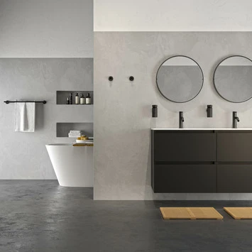 De Noon serie uit de premium collectie van Tiger is een luxe accessoire serie waarin design, kwaliteit en functionaliteit concessieloos samen gaan. De matzwarte kleur in combinatie met de ronde vormen geven de accessoires een krachtige uitstraling die naadloos aansluit bij de inrichting van de moderne en industriële badkamer en toilet.