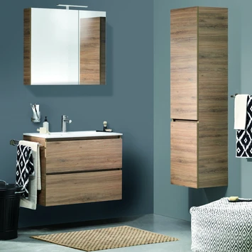 Tiger Karlo Badkamermeubel 80 Cm Chalet Eiken Met Wastafel Hoogglans Wit