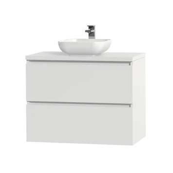Het greeploze Tiger Karlo badkamermeubel is speciaal ontworpen voor de strakke en moderne badkamer. De wastafelonderkast heeft 2 ruime lades om alle badkamerspullen overzichtelijk in op te bergen. De lades zijn uitgerust met hoogwaardige ‘soft close’ geleiders waardoor ze geruisloos sluiten. Door de mooie heldere witte kleur krijgt het meubel een tijdloze uitstraling. Het wit houten wasblad is reeds voorzien van een uitsparing voor kraan en waskom. De elegante, onderhoudsarme keramische waskom maakt de set compleet.