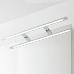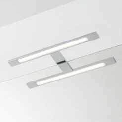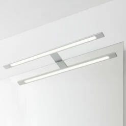 Zoek je een minimalistische lamp voor boven je wasbak? Ga dan voor spiegelverlichting Eros 6040 LED. De lamp is 60cm breed en dankzij de IP44 beschermingsklasse spatwaterdicht, dus uitstekend geschikt om boven je badkamerspiegel te hangen. De behuizing is van kunststof, een licht en vooral vochtwerend materiaal. Dankzij de chromen finish krijgt de lamp een moderne en industriële look. De lamp is voorzien van geïntegreerde LED-verlichting. Kortom: een strakke lamp die past in iedere moderne badkamer.