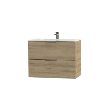 Tiger Studio Badkamermeubel 80 Cm Chalet Eiken Met Wastafel Polybeton Hoogglans Wit Greep Rvs Plat