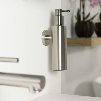 De Tiger Zeepdispenser Boston Hangend RVS van de accessoire serie Boston is uitgevoerd in geborsteld RVS, en is ook verkrijgbaar in glanzend RVS. De zeepdispenser bevat een uitneembare kunststof binnenfles, dit vereenvoudigt het vullen en het schoonmaken. Dit product kan aan de wand worden geschroefd, maar kan ook met behulp van Tigerfix 1 op een gladde en harde ondergrond geplakt worden. Je hoeft dus niet te boren. (Tigerfix is los verkrijgbaar). Er zijn van deze serie diverse sanitair accessoires verkrijgbaar, waaronder verschillende maten Boston zeepdispensers, inclusief de kleinere versie voor het toilet. Dit product maakt deel uit van het Boston totaalconcept, dat verder bestaat uit kranen, badmeubelen, douche accessoires en douchecabines, alles in de Boston stijl.